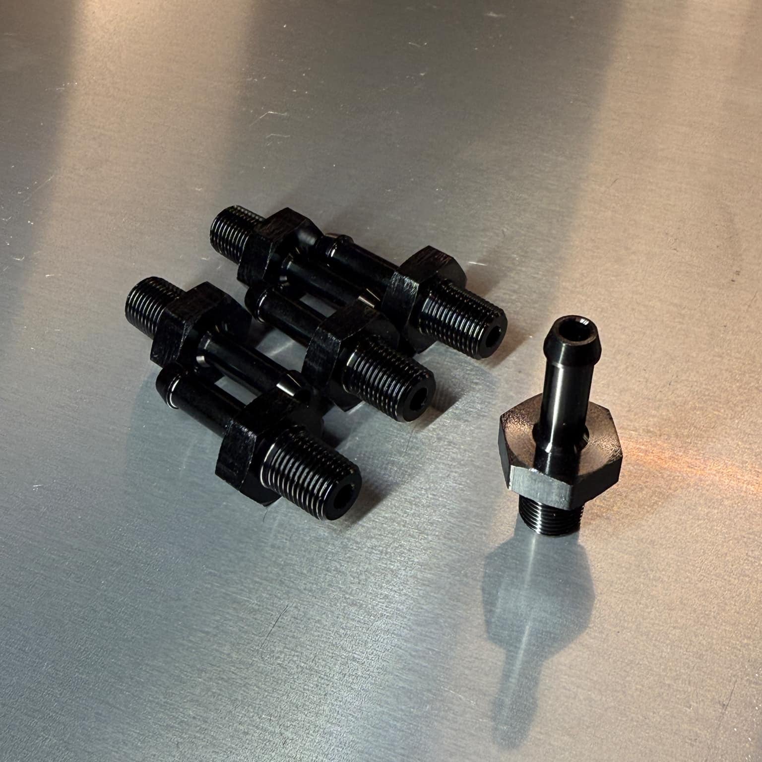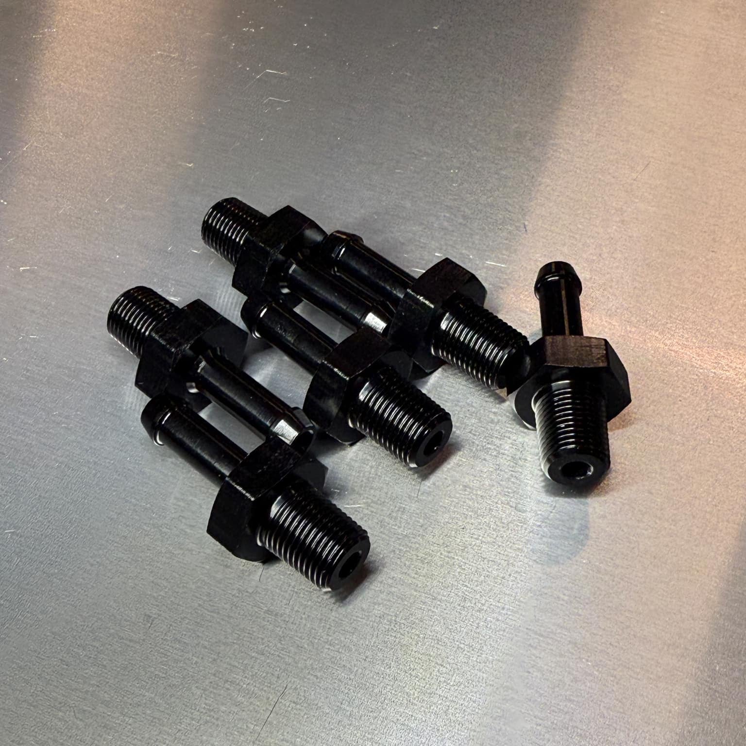 Made from durable 6061 billet aluminium, our 1/8" NPT to 1/4" straight barb fittings feature a sleek satin black anodized finish. Ideal for a variety of applications, including fuel, oil, water, and air systems.